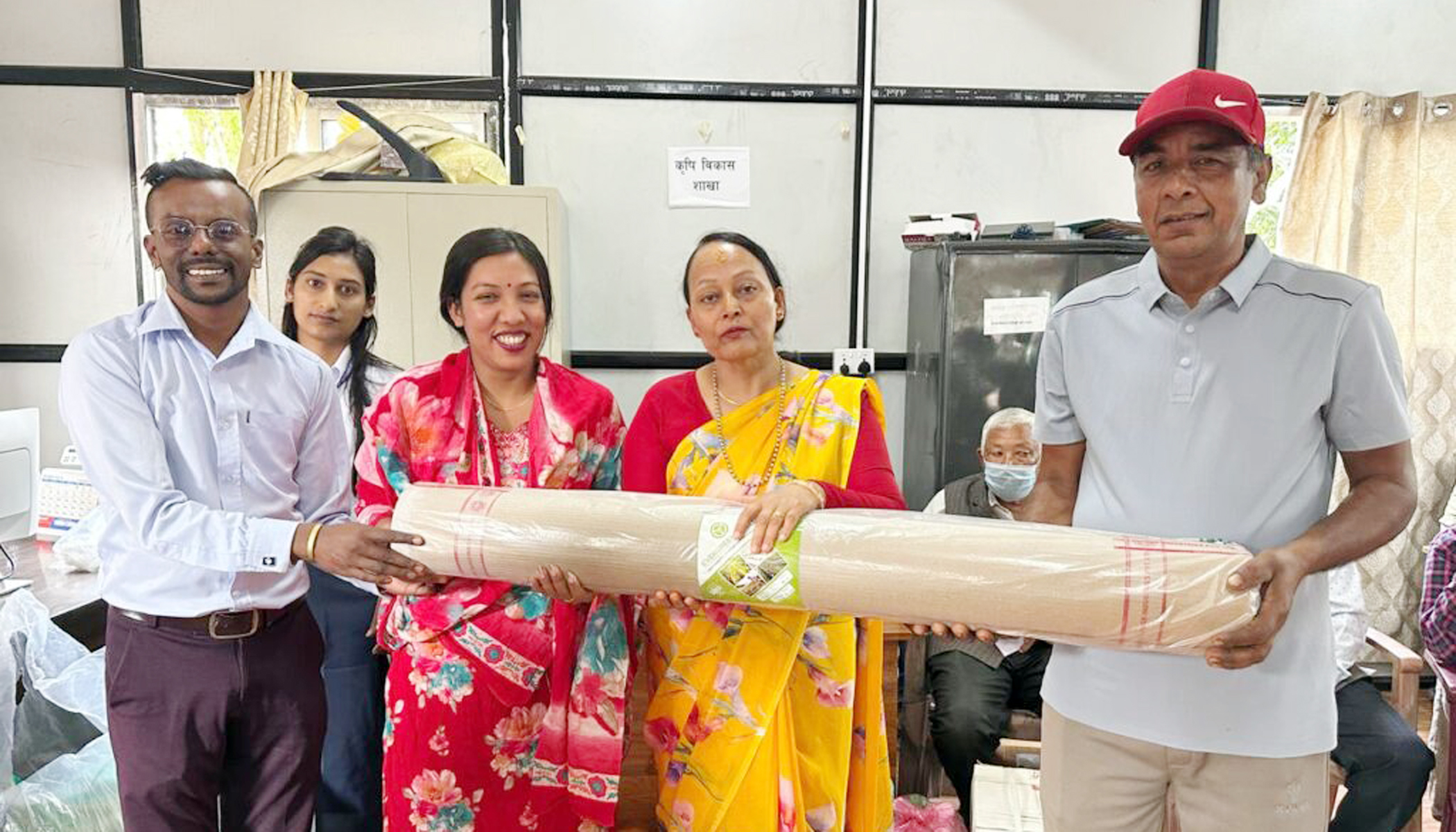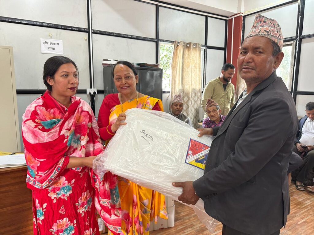 प्लास्टिक मल्चिङ २१२ थान, प्लास्टिक टनेल ४० थान, ग्रीन नेट २७ थान, सिलिकन स्टिकर ११० थान, माइक्रो न्यूट्रिएन्ट १३० थान तथा च्याउको बिउ वितरण गरिएको कृषि प्राविधिक सुजित शाहले जानकारी दिनुभयो ।