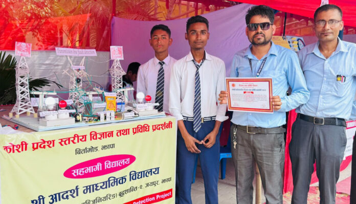 बिर्तामोड । कोशी प्रदेशस्तरी विज्ञान तथा प्रविधि प्रदर्शनीमा झापाको बुद्धशान्ति–२ को आदर्श मावि प्रथम भएको छ । प्रथम भएको सो विद्यालयलाई नगद ४ लाख रुपैयाँसहित प्रमाणपत्र प्रदान गरिएको छ ।