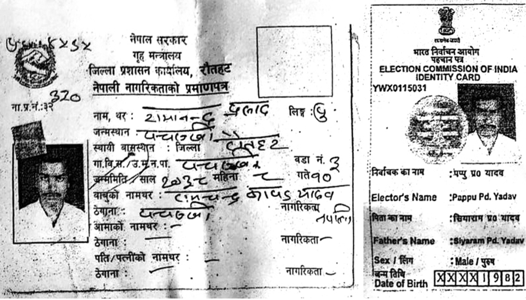 नेपालमा भने उनले २०४७ जेठ २३ गते रौतहटबाट नागरिकता लिएका छन्। सो नागरिकतामा बुवाको नाम रामचन्द्र कापड यादव, ठेगाना पञ्चरुखी गाविस–३ उल्लेख छ। यसै नागरिकताबाट उनले मतदाता परिचयपत्र समेत प्राप्त गरेका छन्।