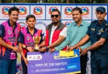 एलभिडी झापा महिला गोल्डकपमा फाइनल खेल्ने नेपाल पुलिस क्लब र एपिएफका ५ खेलाडीलाई सम्मान गरिएको हो । गोल्डकप विजेता नेपाल पुलिस क्लबका सरु वाइवा र उपविजेता एपिएफ क्लबका निशा थोकर, रश्मी घिसिङ, सजनी थोकर र टिम मेजेर अनु लामालाई सम्मान गरिएको नेपाल तामाङ्ग घेदुङ शिवसताक्षीका सदस्य लासाङ तामाङले जानकारी दिए ।