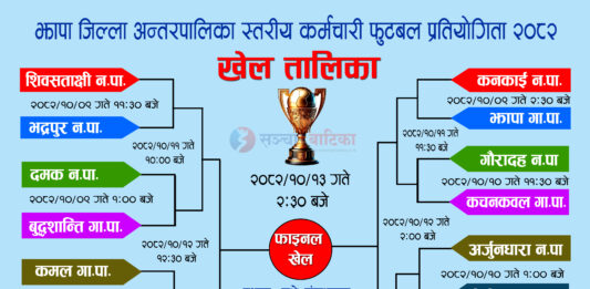 झापा जिल्ला स्तरीय अन्तरपालिका कर्मचारी फुटबल प्रतियोगिता २०८२ को खेल तालिका सार्वजनिक