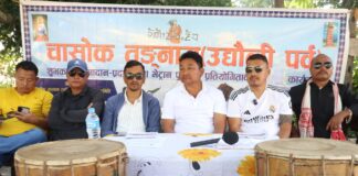 चासोक तङनामको अवसरमा अर्जुनधारामा सामुदायिक वनबीच भेट्रान फुटबल हुँदै